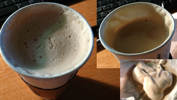 But this latest hike of $0.10 to $0.30 cents per coffee in the summer of 2016 has a twisted sister. More foam (steamed milk)! Not just here and there, at one location or another. Nearly every Starbucks location reduces the amount of milk in the Latte'.